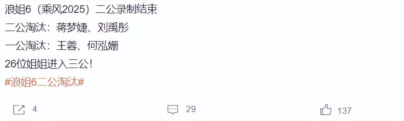 各位读者,你们在看《乘风2025》吗?第二轮舞台公演已经录制完成,从网上传出的消息上看,又有两位实力派姐姐被淘汰,而二公排名前五名也大洗牌,但却不见李晟,各位读者,你们怎么看呢?