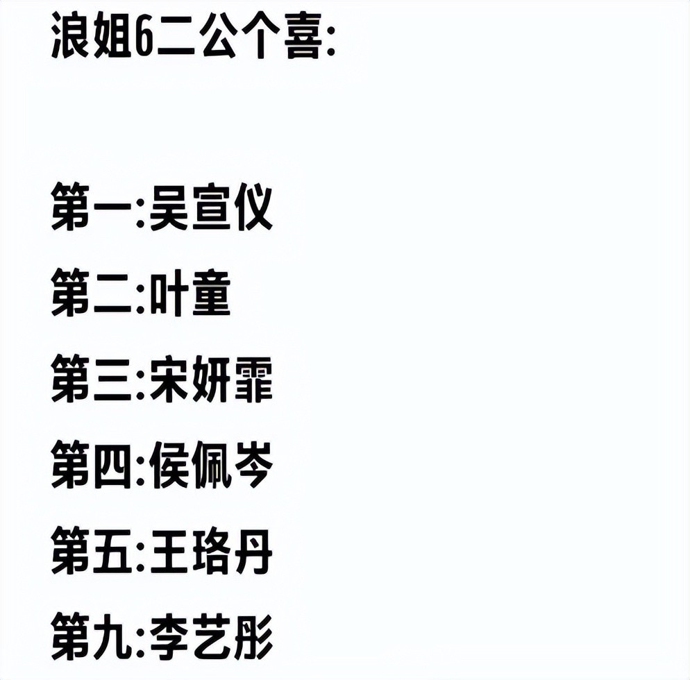 在第二轮舞台公演中,吴宣仪对叶童部落,看到这样的对决情况,网友们纷纷表示:吴宣仪真的是来“乘风破浪”的。看到网传一公和二公的排名,很多网友都忍不住问:高人气姐姐李晟呢?